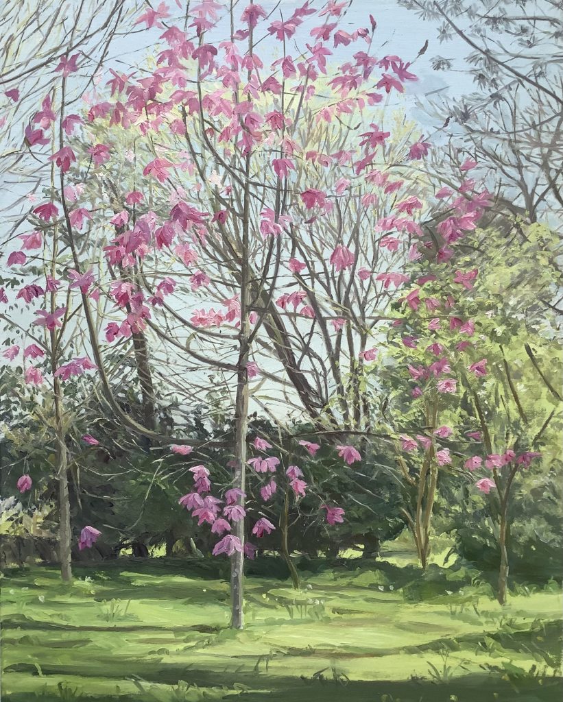 Now that winter has truly arrived in the gardens, during these cold, crisp and sunny days, Chris Williams, our Artist in residence, is still hard at work and we are pleased to be able to feature some of her recent canvases.