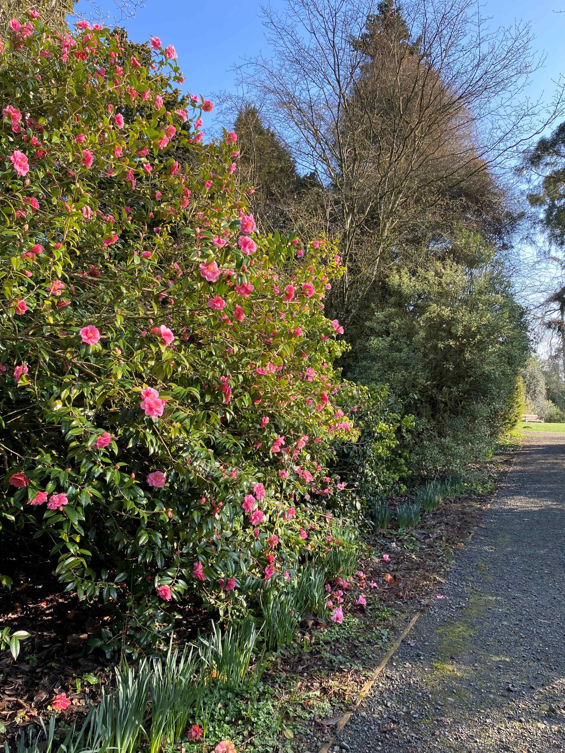 We are at that precious and magical moment in the Gardens when many of the early spring bulbs are still in their fullest glory – swathes of daffodils, clumps of hellebores, even snowdrops – and now the more flamboyant camellias and magnolias have joined in, and are flowering in profusion. Spring has most definitely sprung – and is springing all around us.